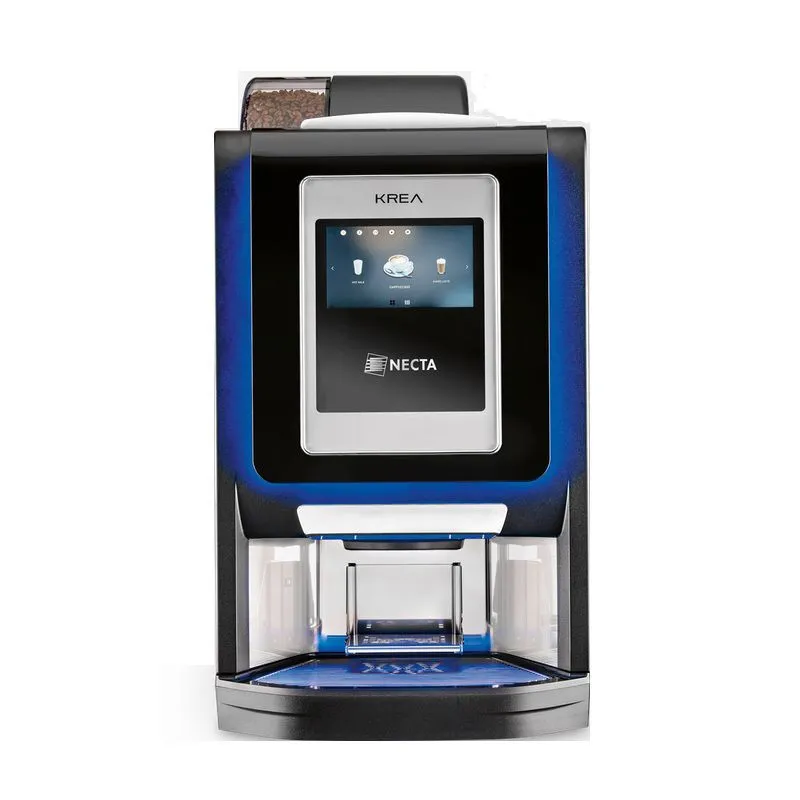 La KREA TOUCH de chez NECTA : machine à Grain HAUT DE GAMME est le nouveau modèle élégant qui vient enrichir la famille de Necta. Son design attractif, son éclairage décoratif, ses cadres chromés et ses surfaces noires brillantes associées à ses performances inégalées font de Krea Touch la solution idéale pour votre pause-café.